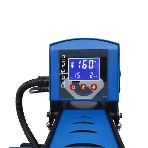 Het digitale display is op een simplistische maar krachtige manier ontworpen, wat de machine zeer gebruiksvriendelijk maakt. Het LCD-scherm bevat drie touchscreen-knoppen; modus, plus en min. De machine heeft vier standen; stand-by, temperatuur instellen, tijd instellen, teller resetten. Kortom, met slechts een paar klikken is de automaat klaar om uw overschrijvingen af ​​te ronden!